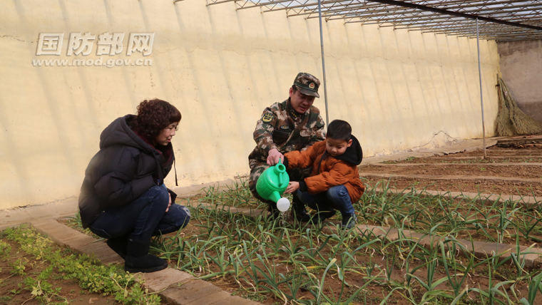 军嫂和军娃的到来,让这个平日里肃穆安静的部队营院顿时热闹起来。操场边,刘铭俊带着孩子静静地看着战士们热火朝天的训练;甬道上,尹丰刚手把手又教儿子打了一遍军体拳;蔬菜大棚里,那片被三人浇过的菜地,不知道水是不是有点多了……