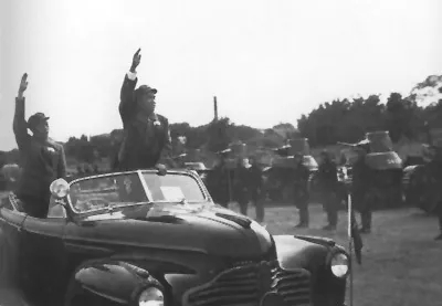 1949年,朱德在开国大典上由聂荣臻陪同检阅海、陆、空部队。