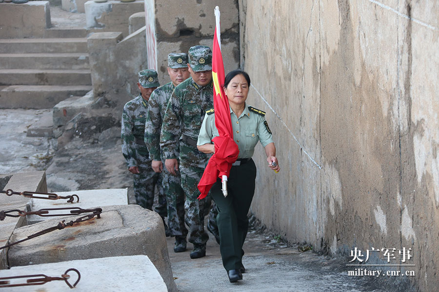 清晨,王仕花带领三名新哨兵前去升旗。李建峰摄