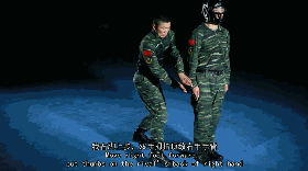 3、当跪压敌后,左手折敌手腕,右手别敌右肘,将敌控制。