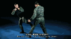 1、敌我在格斗式对峙的基础上,当敌起左侧踹腿攻击我腹部时,我迅速收腹,右手由上向下,左手右下向上,相合锁扣敌左小腿末端。左脚进步的同时,左手圈敌小腿后拉,右手抄抱敌大腿根部。