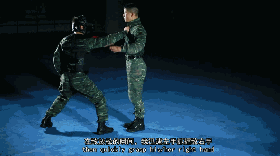 1、我在自然站立或执勤的基础上,敌向我挑衅,突然以右手抓握我衣领。我迅速双手上举,使敌放松警惕;在敌放松的瞬间,我迅速左手抓握敌右手,右手以掌根猛击敌下颚。