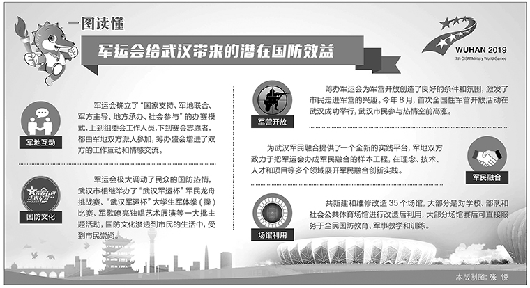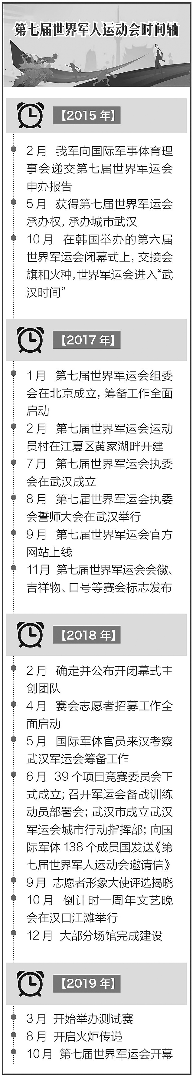 武汉自古便是兵家必争之地、崇军尚武之城。一年后,第七届世界军人运动会圣火将在这里点燃,100多个国家的军人将以和平的名义在这里相聚。这是我国第一次承办综合性国际军事赛事,也是继北京奥运会后,我国举办的规模最大的体育盛会。