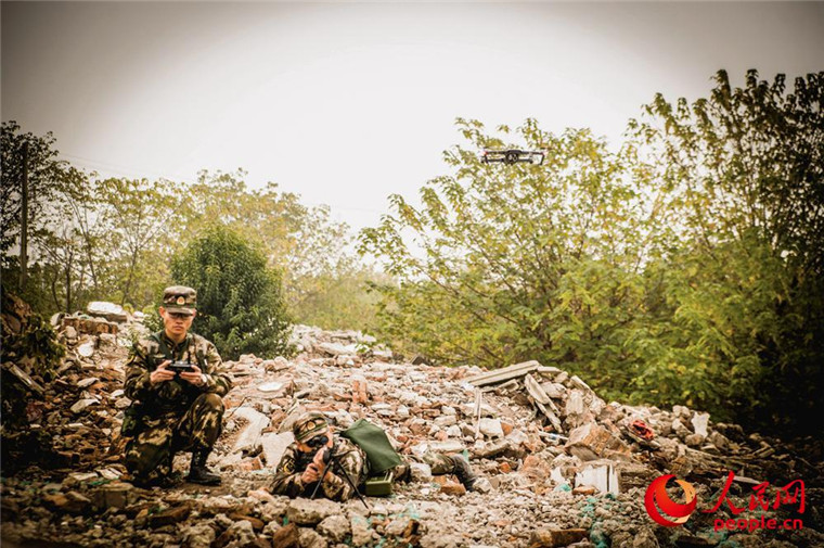 侦查组配合狙击手侦查情况。