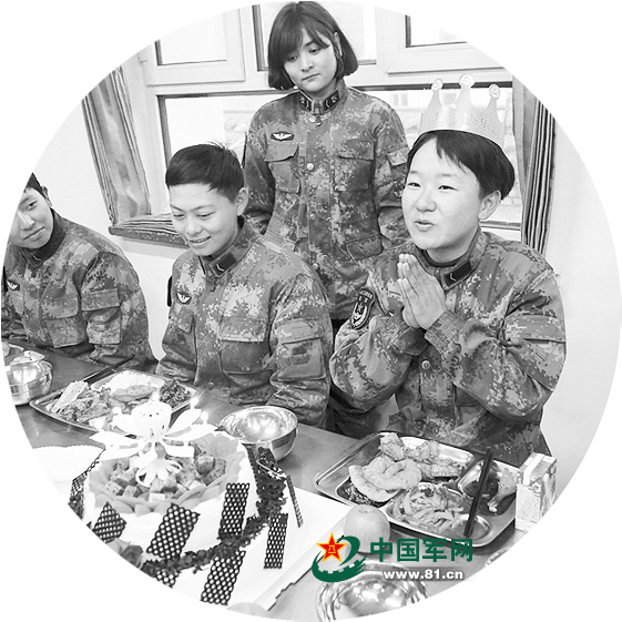 晚饭过后,在连队干部和吾丽娅提带领下,女兵姑娘们一起为侯睿洁庆祝生日,宿舍里的笑声此起彼伏,每个人脸上都洋溢着幸福。