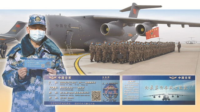 2月17日,两张蓝底白字的“运-20机票”在微信朋友圈刷屏,“运-20机票致敬白衣战士”登上微博热搜榜,无数网友点赞。特制机票的正面是出发时间、姓名、航程等信息,背面是温馨提示和“向最美白衣战士致敬”。有网友坦言:被这张“硬核机票”暖哭。