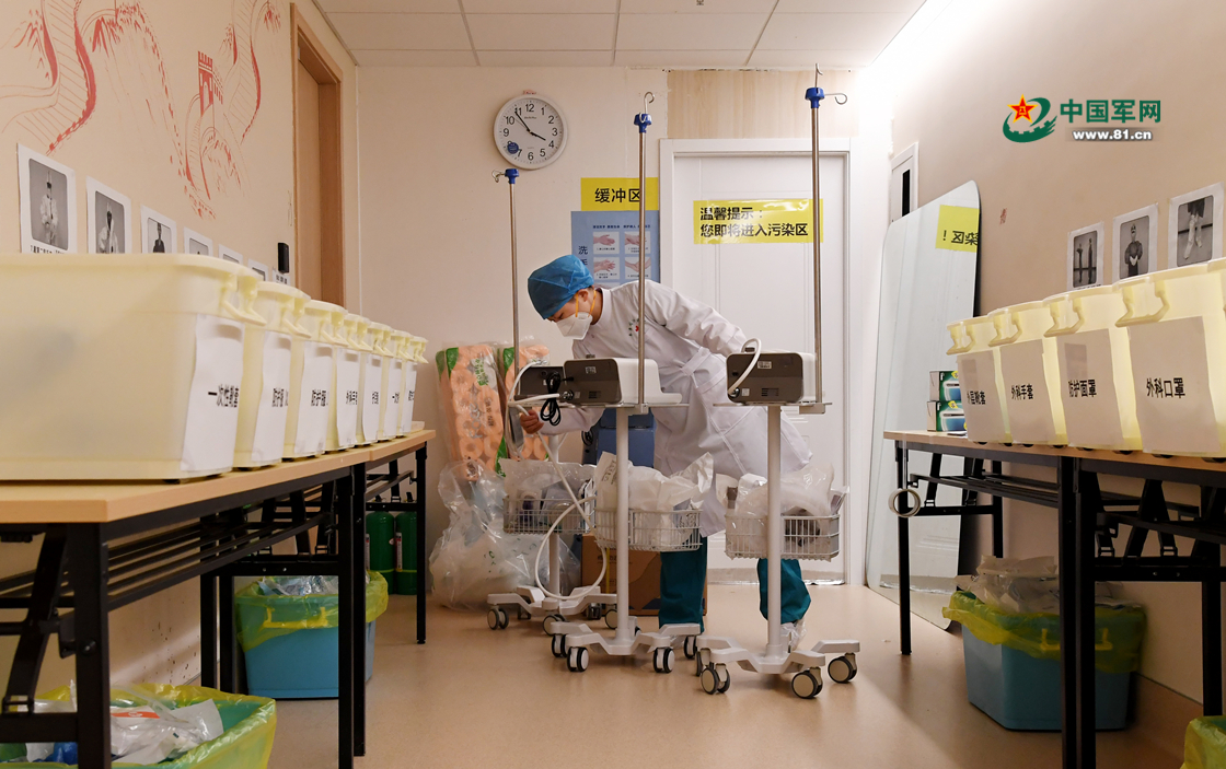 路美在整理高流量吸氧机,准备带入病房。