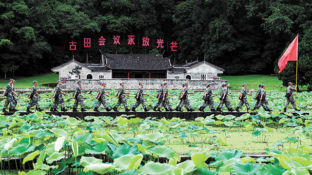 6月上旬,第72集团军某旅组织党员前往古田会议会址,开展主题党日活动。史亚翔摄