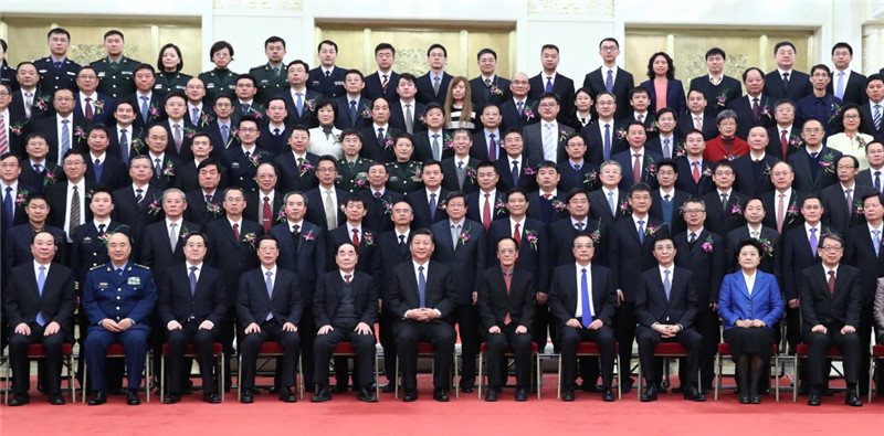 1月8日,国家科学技术奖励大会在北京人民大会堂隆重举行。党和国家领导人习近平、李克强、张高丽、王沪宁出席大会并为获奖代表颁奖。会前,习近平等党和国家领导人会见获奖代表并同大家合影留念。新华社记者谢环驰摄
