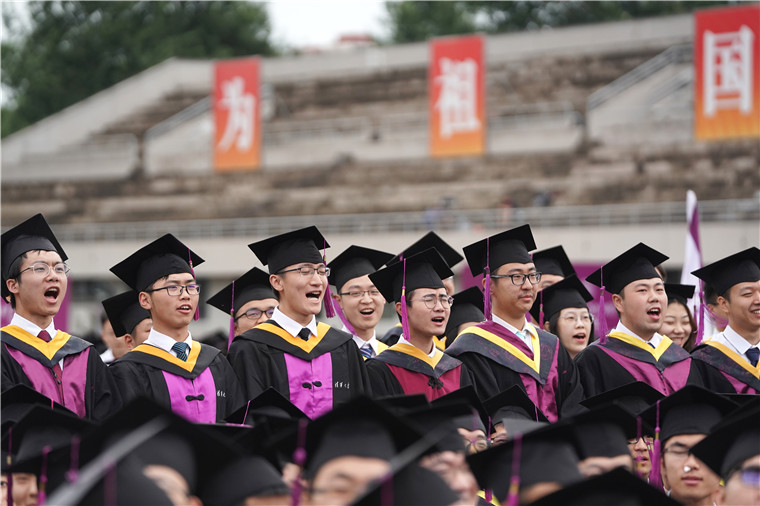 清华大学2019年本科毕业生参加毕业典礼(2019年7月7日摄)。新华社记者 鞠焕宗 摄