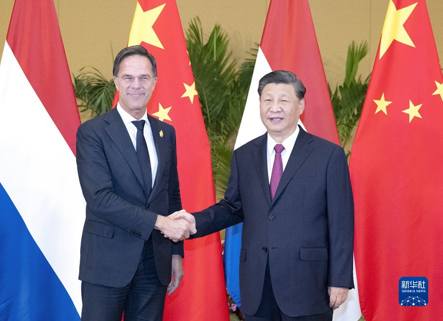 当地时间11月15日下午,国家主席习近平在巴厘岛会见荷兰首相吕特。
