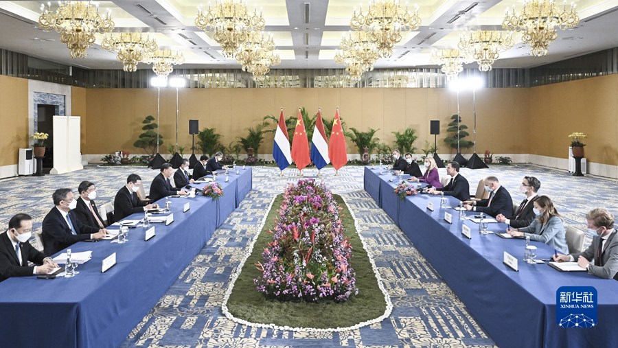 当地时间11月15日下午,国家主席习近平在印度尼西亚巴厘岛会见荷兰首相吕特。新华社记者 燕雁 摄