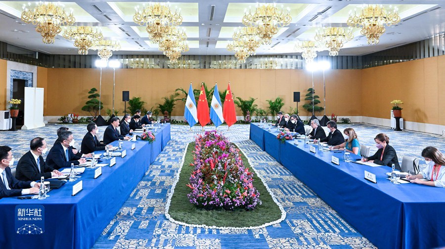 费尔南德斯表示,我想当面再次祝贺习近平主席连任中共中央总书记。今年2月我赴北京出席冬奥会开幕式期间同你成功会晤,取得丰硕成果,阿方对进一步深化阿中全面战略伙伴关系满怀期待。阿根廷永远是中国的朋友和兄弟,永远支持中方维护自身主权和领土完整。阿方愿同中方推进经贸、金融等领域合作,推进“一带一路”建设,构建阿中命运共同体。阿方希望同中方加强金砖国家等多边框架下协调合作,将积极促进拉中关系发展。