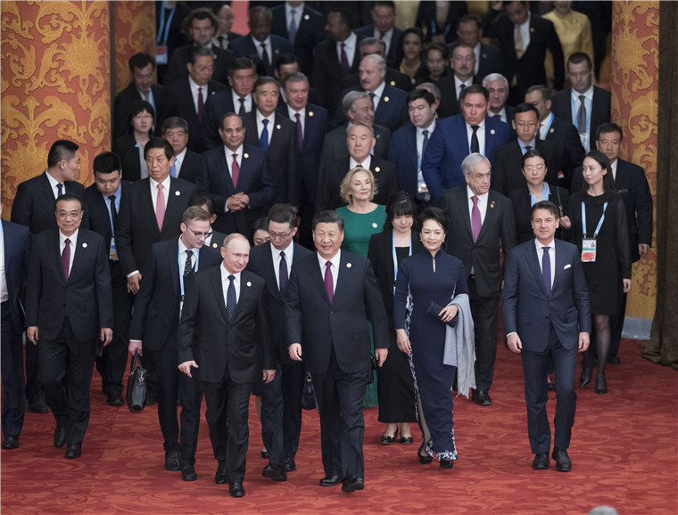 习近平和彭丽媛欢迎出席第二届“一带一路”国际合作高峰论坛的外方领导人夫妇及嘉宾