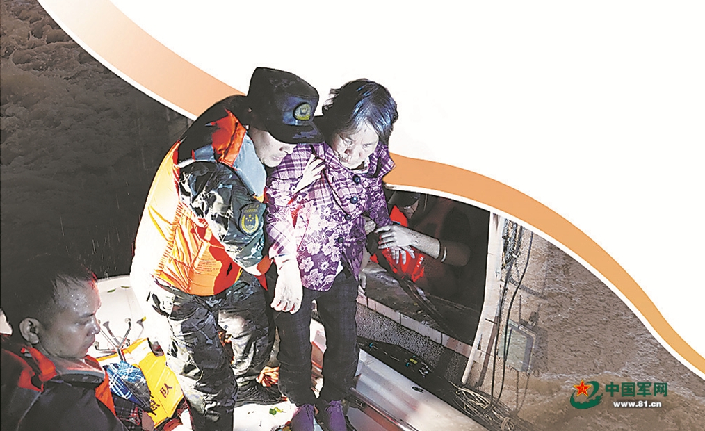 武警湖南总队岳阳支队官兵转移平江县被困群众。雷明亮摄