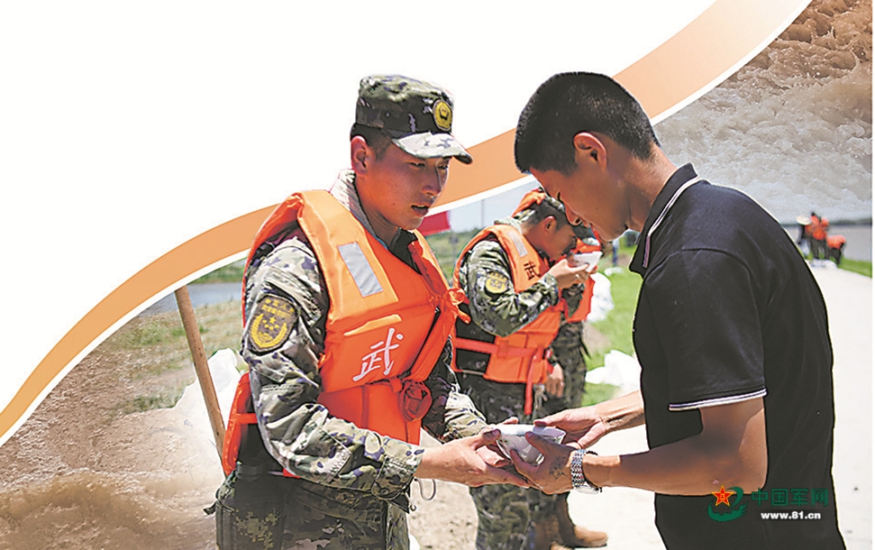 “一天有好几批群众送来西瓜、绿豆汤、鸡蛋,都是他们自家产的。可是我们任务紧急,顾不上吃。”杨帅军说,“还有群众告诉我,以往防汛期间也有部队官兵来棉船镇执行抗洪抢险任务,所以看到我们格外亲。”