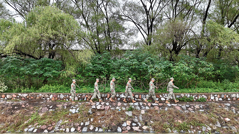 民兵在宿鸭湖湿地自然保护区巡逻。张 萌摄