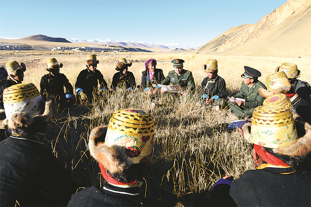 官兵给藏族群众宣讲政策(资料图片)。刘煜钦 摄