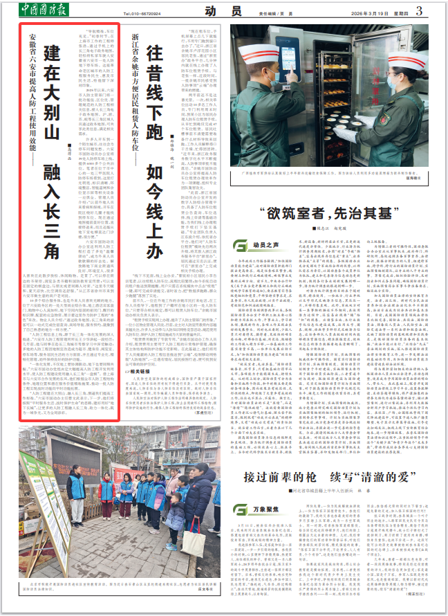 “导航精准,车位充足。”初春时节,在上海市工作的工程师张浩,通过手机上的长三角电子政务地图,轻松将私家车驶入安徽省六安市一处人防地下停车场。这座革命老区城市的人防工程服务民生、惠及市民生活,给他留下深刻印象。