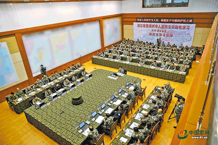 浙江省湖州市人防指挥部依托通信警报系统开展实兵实装演练。