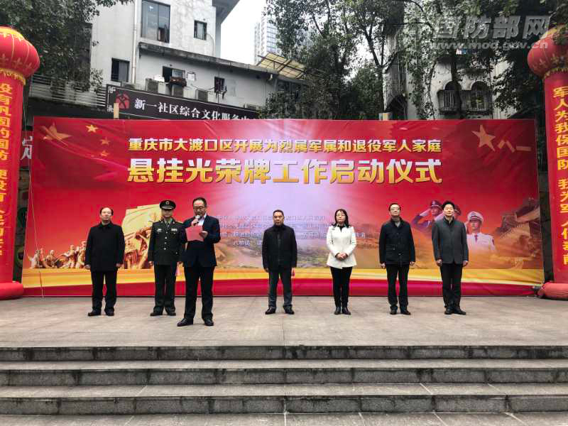 1月18日,重庆市大渡口区新山村街道新一社区广场热闹非凡,在浓厚的新年氛围中,该区在此举办为军(烈)属和退役军人等家庭悬挂光荣牌工作启动仪式。该区区委区政府主要领导、区级部门和单位分管领导、区退役军人事务局领导出席仪式,各镇街分管领导、退役军人代表、社会各界群众等50余人参加,活动由大渡口区人武部政委邱晓宁主持。