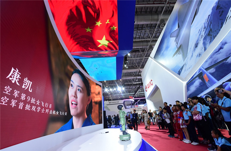 蓝天春蕾女童在航展现场参观。陈艺 摄