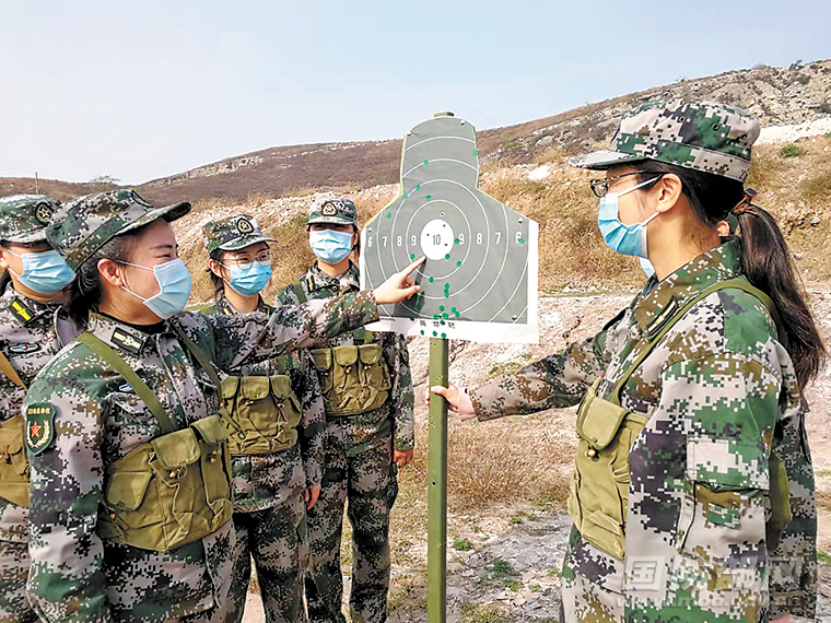 10月29日,河南省焦作军分区举行专武干部集训,提升专武干部军事素质和应急指挥能力。图为专武干部交流射击心得。 辛振乾 摄