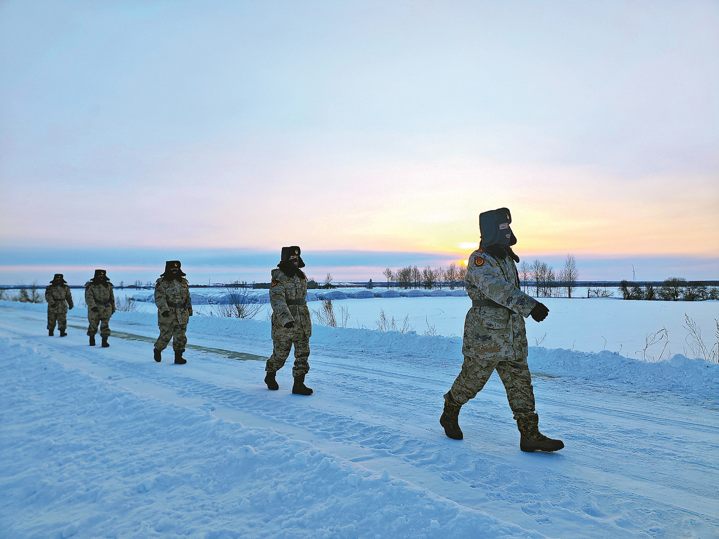 黑龙江省黑河市黄旗营子哨所民兵正在巡逻。 张昊旻 摄