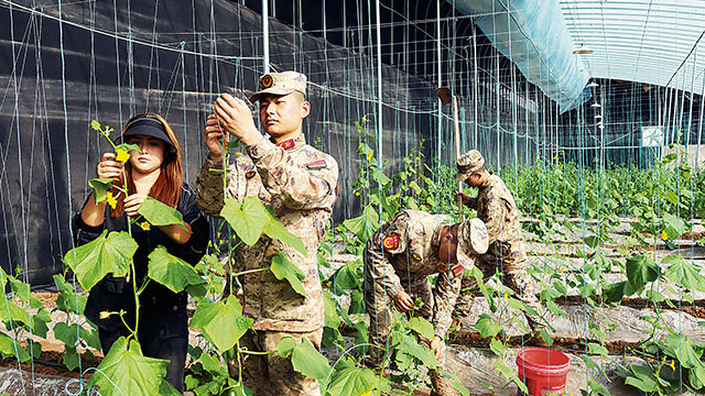 2026-04-01 08:13新疆柯坪县人武部组织民兵走进帮扶村温室大棚开展助农活动