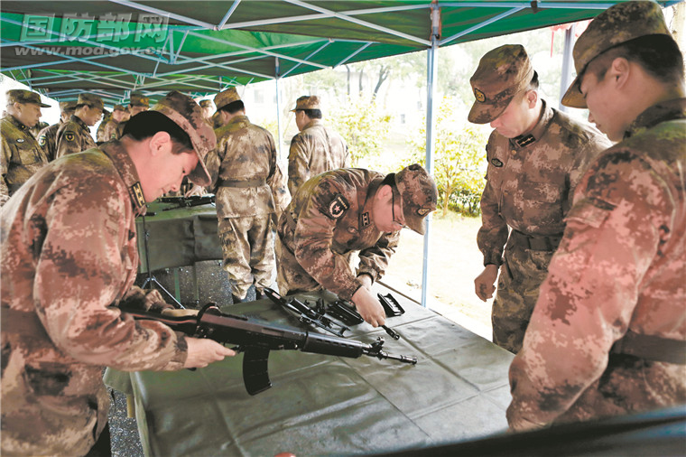 组训人员点名,司令员响亮答“到”;北斗装备操作,政委虚心求教……尽管连日阴雨、寒风瑟瑟,浙江省军区训练场一派热火朝天的练兵景象。省军区战备建设局参谋沈潮建告诉记者:“新年开局,省军区主要领导冲在前,给机关当榜样、为基层做表率,提振了官兵士气,绷紧了练兵打仗这根弦。”年初以来,该省军区坚决贯彻统帅训令和中央军委军事工作会议精神,聚焦国防动员主责主业,紧盯备战打仗下功夫,聚焦谋战思训强本领,全面锻造打仗型国动先锋“中军帐”。图为参训人员进行轻武器分解结合训练。中国国防报特约记者 宋芳龙摄