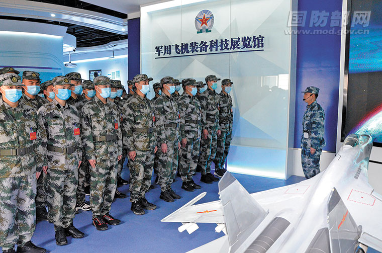 图为预定新兵在该校军用飞机装备科技展览馆参观。 李永智 摄