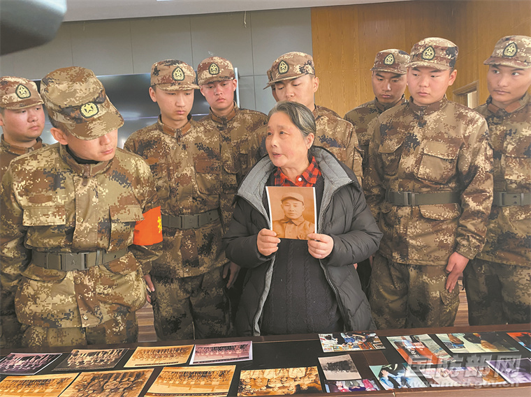 山东 2月28日,山东省济宁市,老红军刘金山的女儿刘芳芳(中)受邀走进役前教育训练场,为预定新兵讲述父亲生前战斗故事。张印东摄