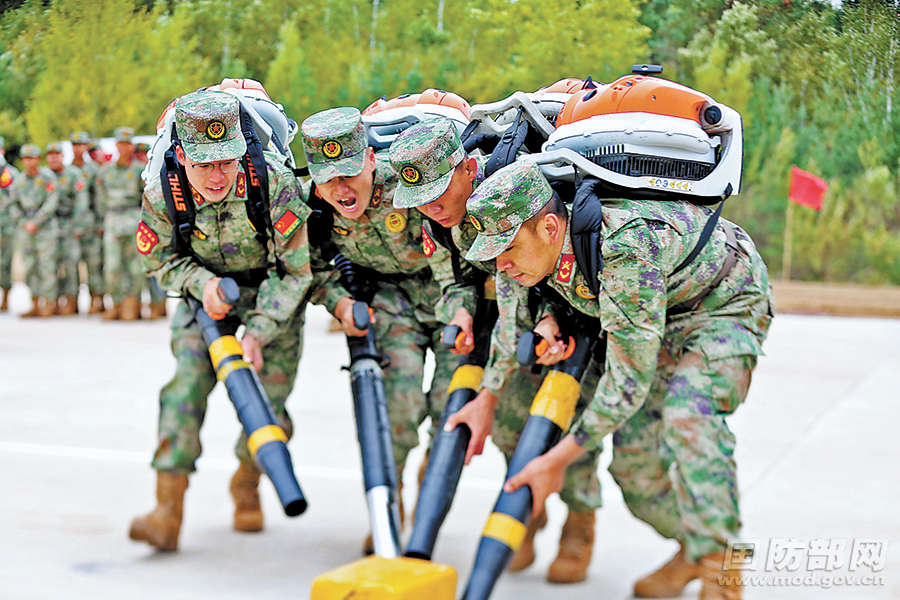 松岭区民兵参加灭火协同作战课目比武。曹修武 摄