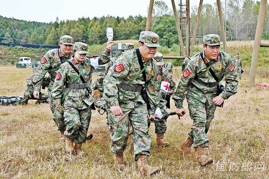 卫生与救护课目比武。赵延存 摄
