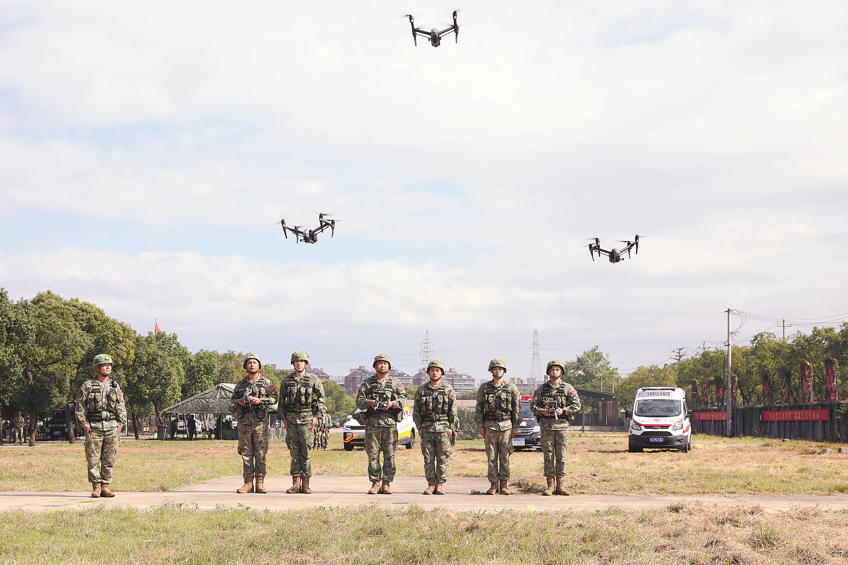 泰顺县民兵无人机侦察小组操控无人机。宋芳龙 摄