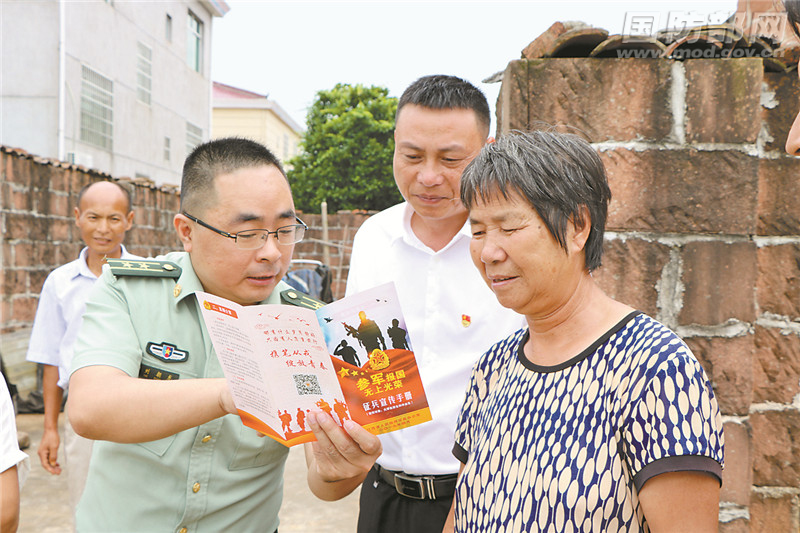 7月15日,余江征兵工作人员向适龄青年家长宣传征兵政策。吴紫云摄
