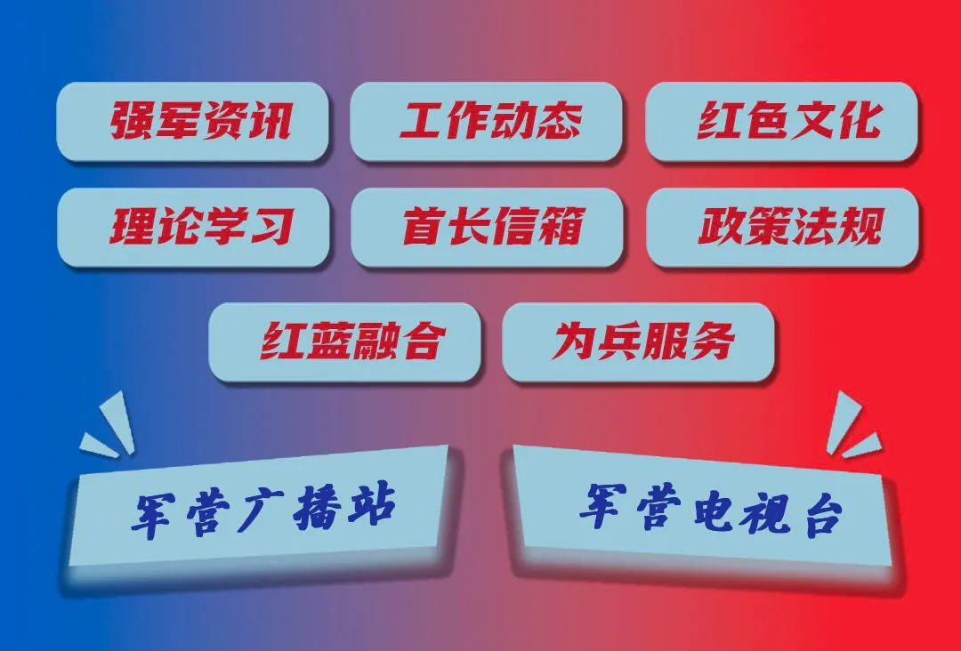 局域网。开设强军资讯、工作动态、红色文化、理论学习、首长信箱、政策法规、红蓝融合和为兵服务8个版块。