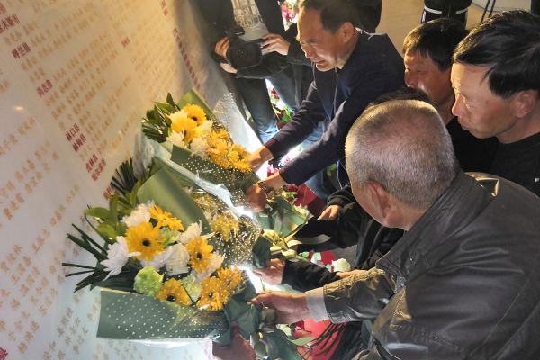 烈士亲人向烈士敬献鲜花。