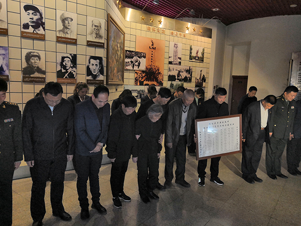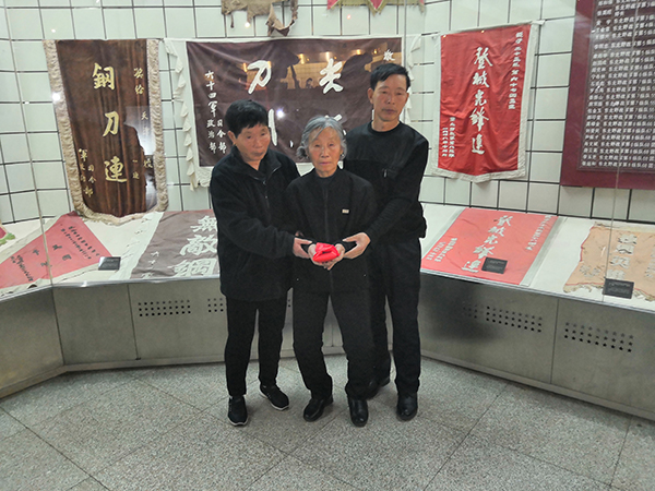 烈士赵淑堂女儿赵桂芝一家三口在纪念馆缅怀烈士。