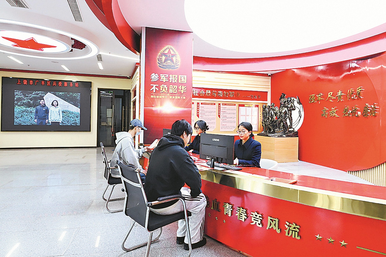 “征兵服务站搬进政务服务大厅,群众一眼就能看到、几步就能走到。”徐利庆向笔者介绍,大厅内的兵役服务站分业务办理区、政策咨询区、应征预检区和互动体验区,各区域设施齐全、功能完备。