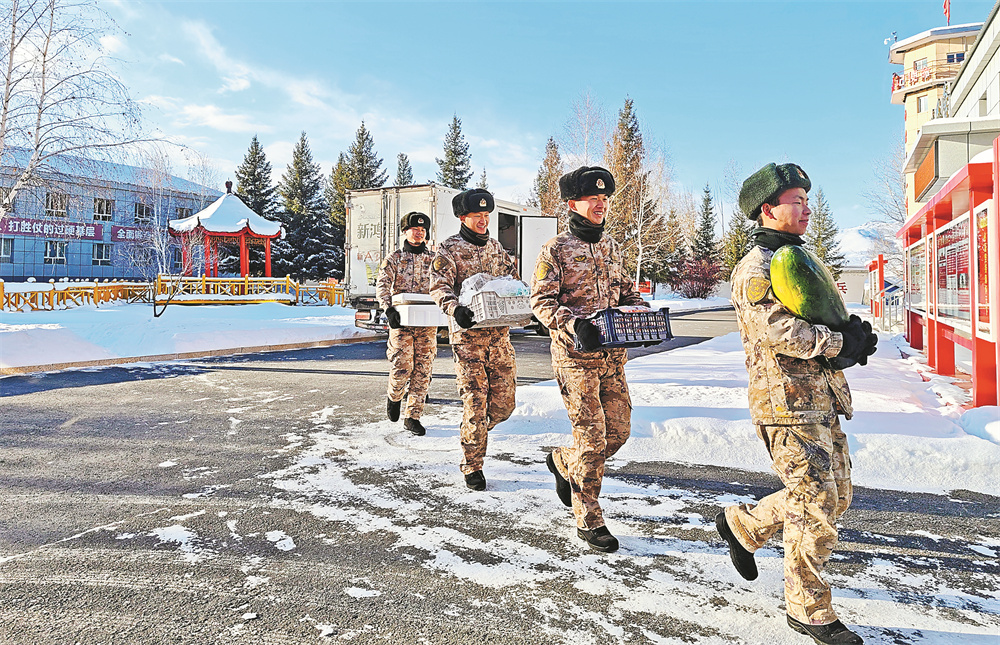 “如今,冬季菜品不仅品类丰富,食材也更加绿色新鲜,餐桌上除了‘老三样’,还多了肉类、禽蛋、牛奶‘精三样’,即便数九寒天、大雪封山,新鲜果蔬也几乎天天见。”新疆军区某高原哨所一名干部说,大家吃得营养健康,卫国戍边的热情更加高涨。