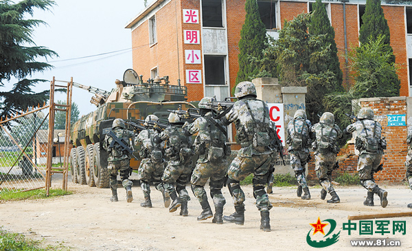 该团利用改造的老营区展开城市攻防战斗演练。周彬 摄