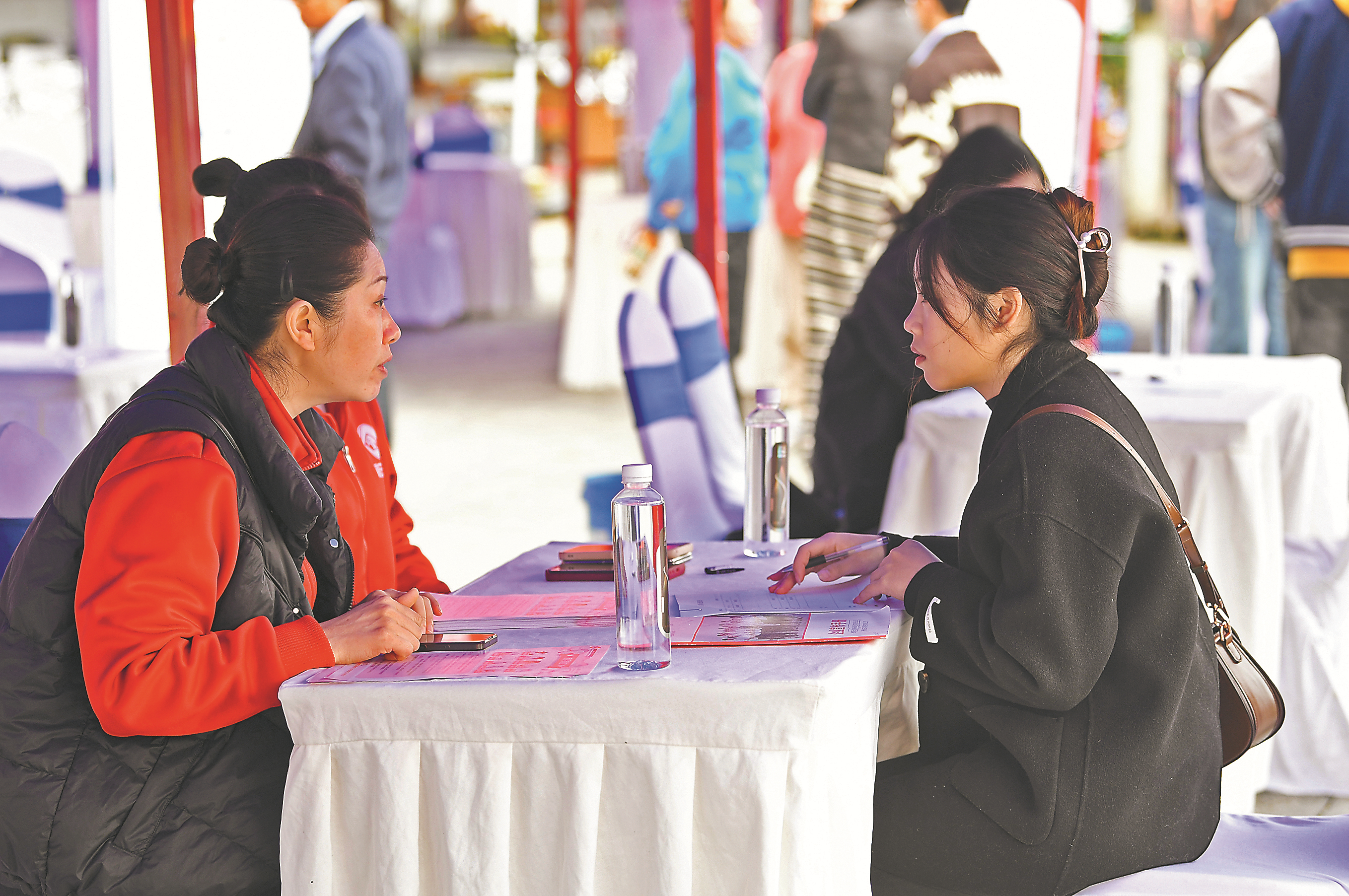 招聘企业人员向随军家属介绍岗位情况。王瑶 摄