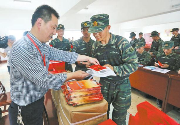 株洲军地组织志愿者律师走进军营提供法律服务,赠送普法书籍。杨 欢摄