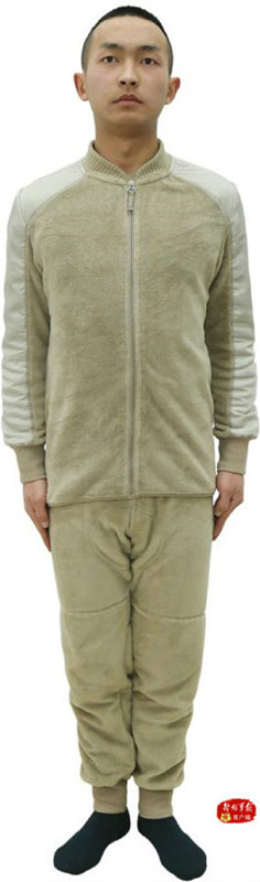 主体材料为抓绒保暖材料,具有轻质、保暖、抗静电、透气、快干、易打理等特点;采用小立领拉链式运动衫式样,即可作为内层保暖服装与冬作训服、士兵冬常服配套穿着。