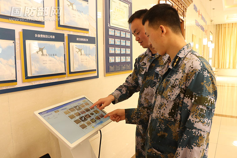 海军航空兵某场站积极推进伙食保障精确化、智能化,利用点餐评菜系统征求官兵意见建议,实现了菜品直点、主厨直选、意见直达等功能,确保官兵既能够吃好,又能厉行节约、减少食材浪费。图为近日该场站官兵在点评本周菜品。 朱阁 摄