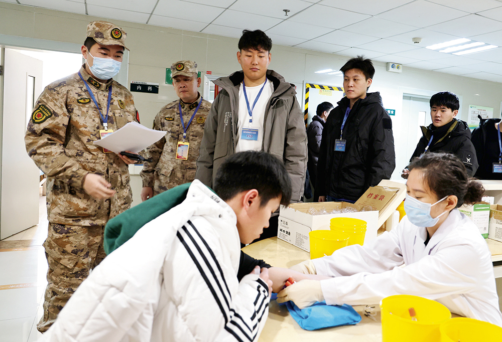 2月上旬,山东省日照市东港区征兵办组织应征青年上站体检。杨建强 摄