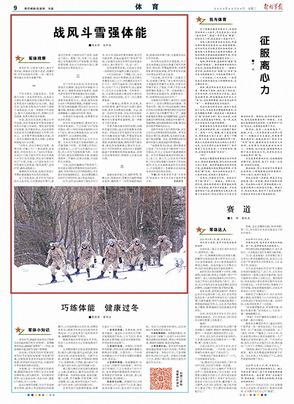 体能,是官兵在战场上赖以生存的基础,官兵体能素质的强弱直接关系到生存能力的高低。现代战争呈现出高强度、快节奏的特点,无论是指挥员还是战斗员都要消耗巨大的精力和体力。在冬季开展体能强化训练,对一支军队锤炼和提升全天候、全地域制胜能力十分必要。