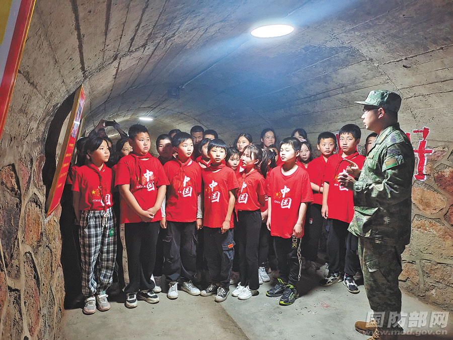 图为该区人武部组织学生参观防空洞。吴文柱 摄