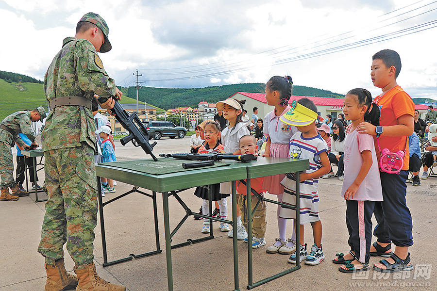 该旅官兵为“军娃”们演示枪械分解结合。龙喜涛 摄
